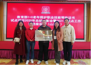 4月9日,教育部1+X老年照护职业技能等级证书试点项目2020年度总结表彰会暨2021年试点工作推进座谈会(山东省)在威海成功召开,公司因在2020年度考评工作中组织有力、表现突出,获评价组织颁发“突出贡献奖”。