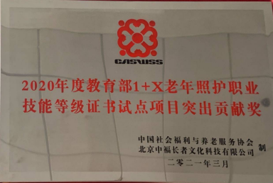 bv伟德国际体育荣获2020年度教育部1+X老年照护职业技能等级证书试点项目突出贡献奖