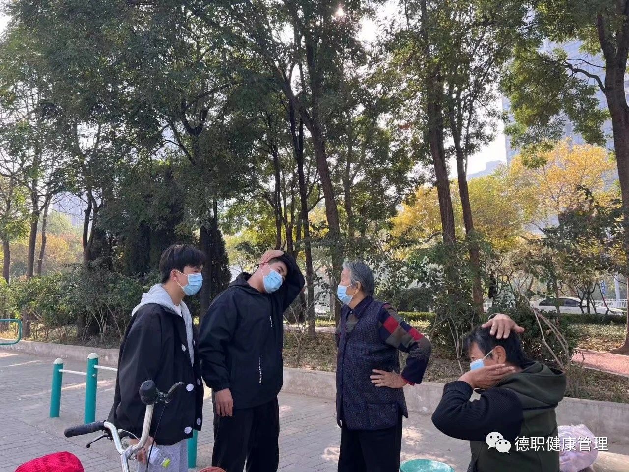康复治疗技术专业的志愿者为肢体活动障碍的老年人进行康复保健和相关知识的科普,提高老年人跌倒风险的防范能力。