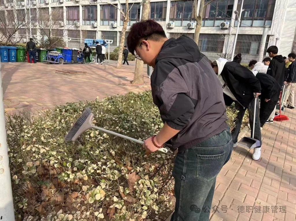 活动中,成员分工明确,各司其职,积极主动投入生活区清扫活动中,特别是卫生死角进行了认真清扫,在同学们一片热火朝天的劳动景象中校园里被打扫的焕然一新。
