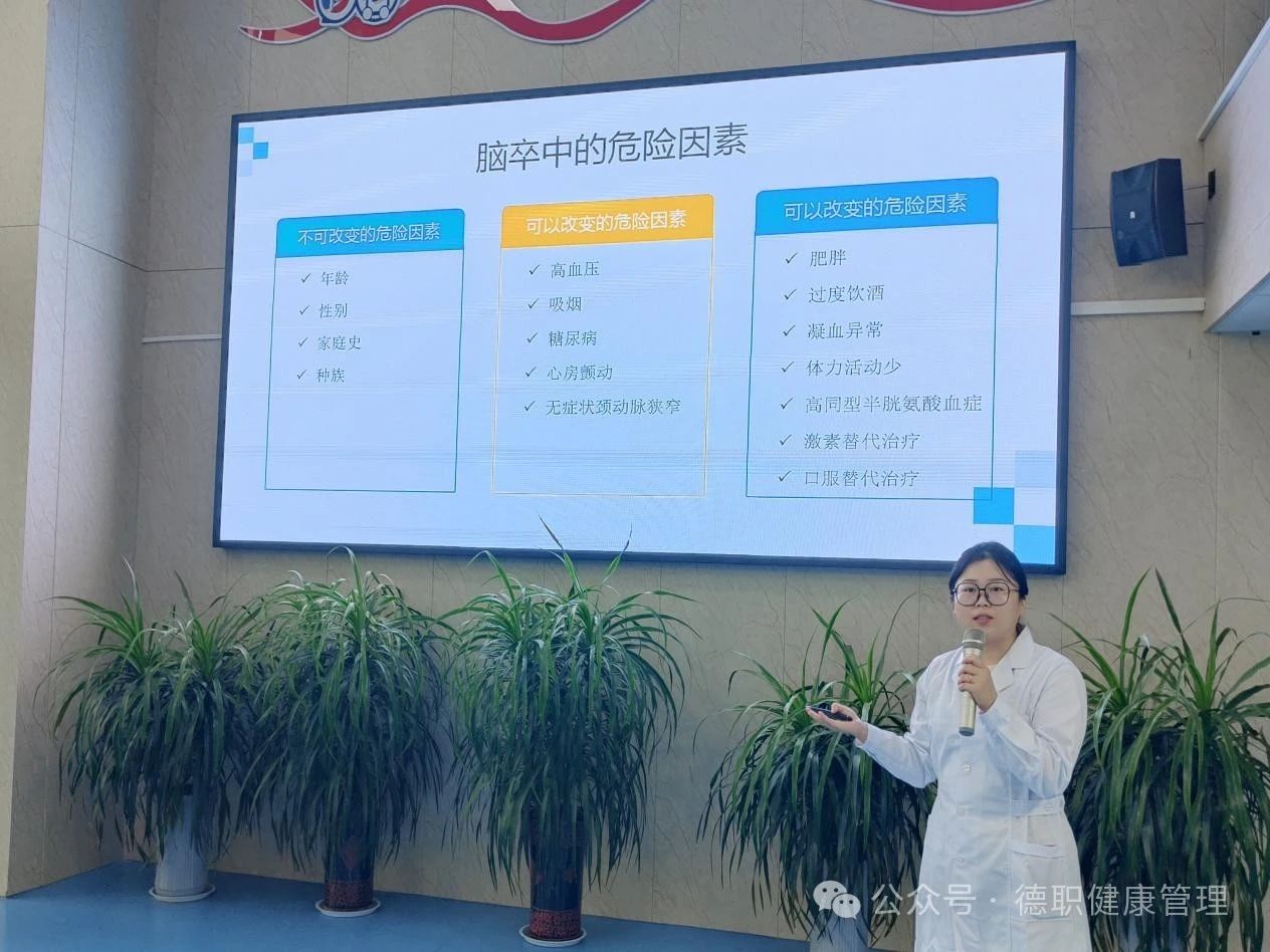 首先由智慧养老教研室的董雯倩老师为老人们进行了一场科普宣讲,主题是《脑卒中健康教育》。董老师从什么是脑卒中,如何识别脑卒中,脑卒中的危险因素,脑卒中的综合预防四个方面为老人们进行了科普,受到了老人们的欢迎。