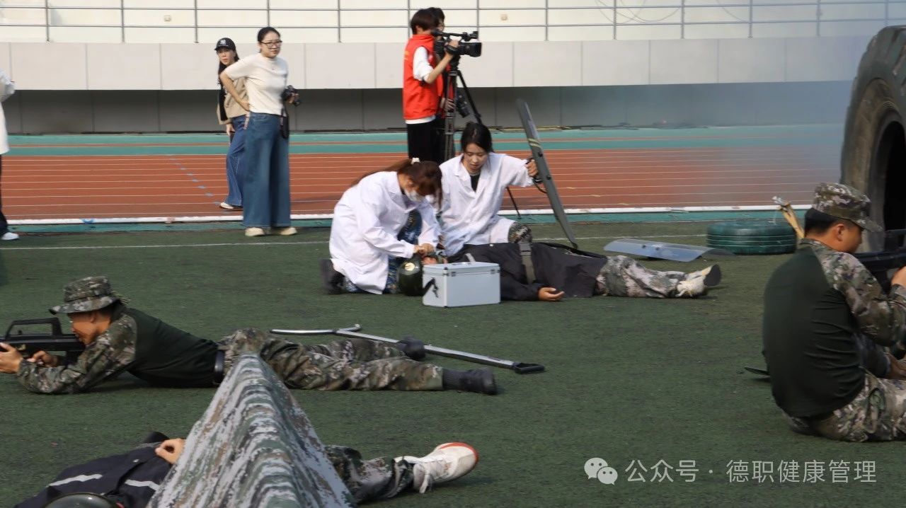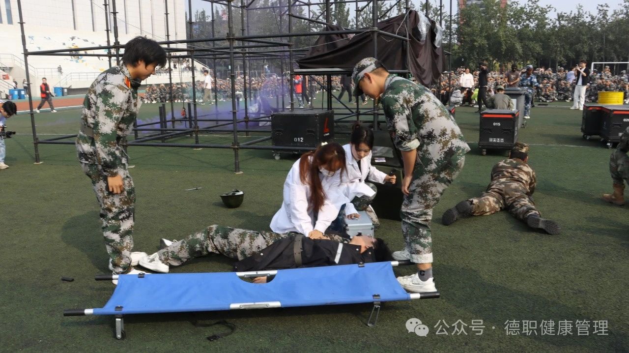 会场上,方阵整齐划一,步伐铿锵有力,公司学子以挺拔的军姿、响亮的口号,展现了新时代青年的蓬勃朝气与昂扬斗志。每一次转身,都是对纪律的遵守;每一步前进,都是对梦想的追求;模拟实地战场医疗救护中,军训员工全副武装,匍匐前进、战场救护,让师生们热血沸腾。