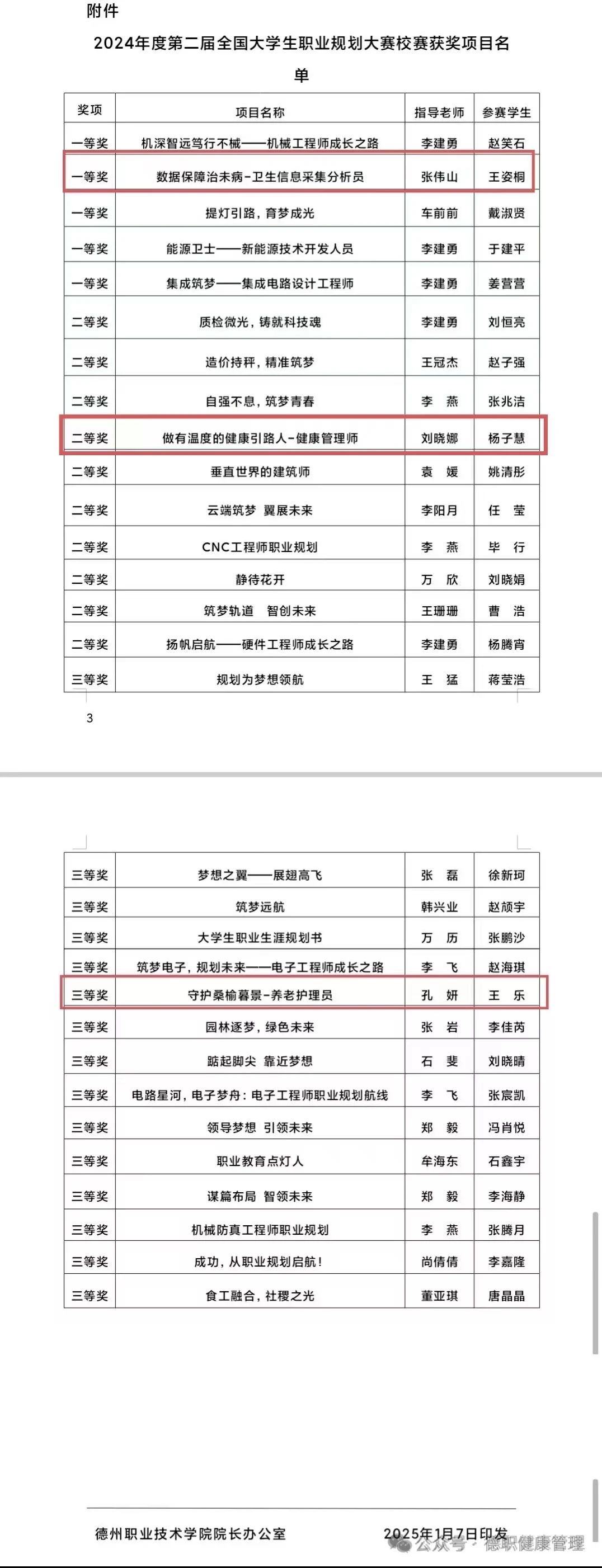 2025年1月7日,bv伟德国际体育公布了第二届全国老员工职业规划大赛校赛获奖项目名单,bv伟德国际体育2024级大数据管理与服务一班王姿桐荣获一等奖、2024级健康管理一班杨子慧荣获二等奖、2023级智慧健康养老服务与管理一班王乐荣获三等奖。