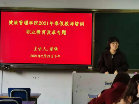 除按要求参加公司集中培训外,公司分别由范轶、郭吉海、杨静秋和林玉凯四位同志进行了《职业教育改革》、《疫情防控》、《bv伟德国际体育建设方案》和《老年服务与管理专业群建设方案》等专题培训。